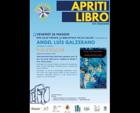 BOOK CONCERT, APRITI LIBRO - BIBLIOTECA FELICE SALERI - VENERDI' 26 MAGGIO 2023 - "NAUFRAGHI" AUTORE ANGEL LUIS GALZERANO