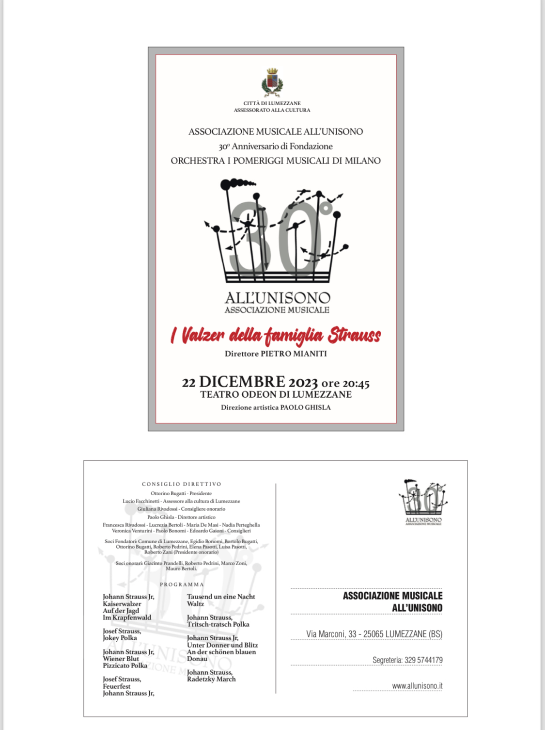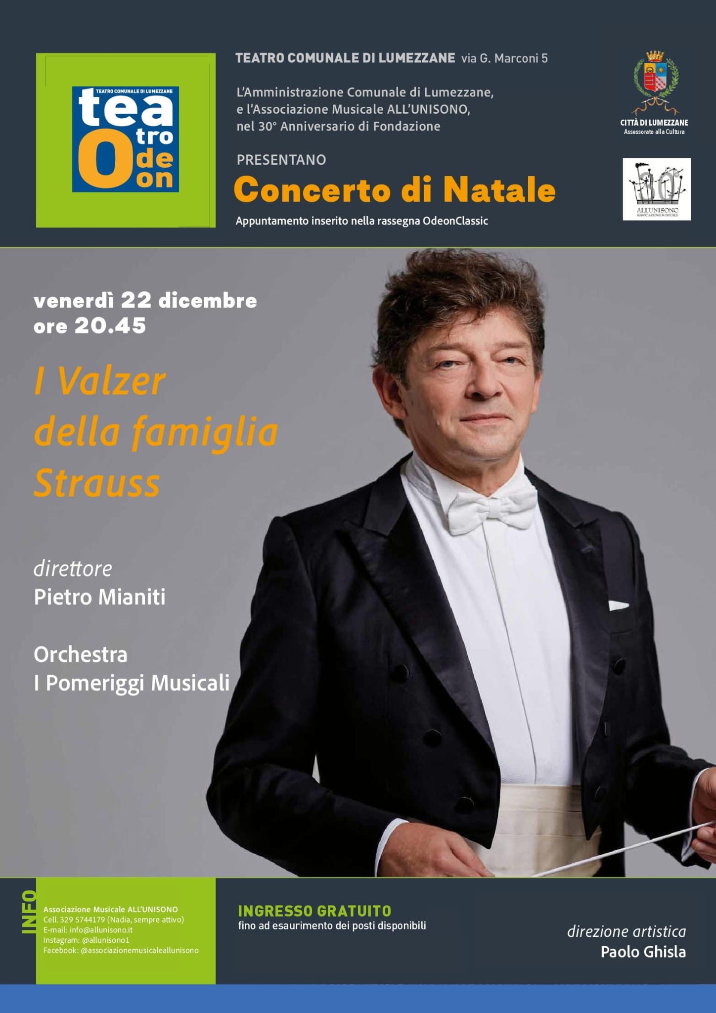 TRENTESIMO ANNIVERSARIO DI FONDAZIONE DELLA NOSTRA ASSOCIAZIONE, SPETTACOLO ODEON CLASSIC DEL 22 DICEMBRE 2023